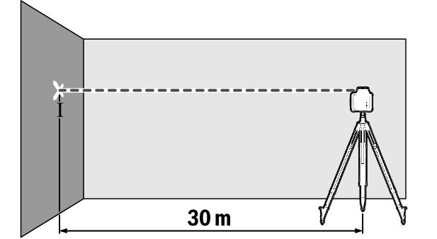 - Mount the measuring tool in a horizontal position 30 m from the wall on a tripod, or place it on a firm, level surface. Switch on the measuring tool.