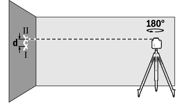 The discrepancy d between the two marked points Ⅰ and Ⅱ on the wall reveals the actual height deviation of the measuring tool for the axis being measured.